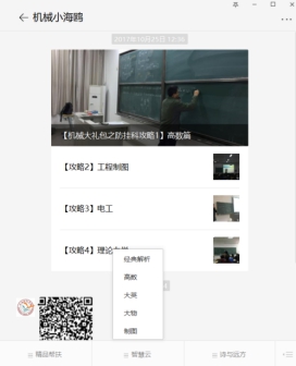 我们将ylzzcom永利总站线路检测里品学兼优的同学集合起来,对内形成小海鸥之间的“高手切磋”,对外营造“朋辈互助”的良好学习氛围。为了将学习指导服务进行全方位覆盖,我们建立了机械小海鸥互助群,同学们有什么不懂的题目随拍随发,小海鸥会在第一时间解答,有时身边没有草稿纸,便把餐巾纸拿来写解题过程,随时随地服务需要帮助的同学。机械小海鸥拥有属于自己的微信公众号,线上有丰富的学习大礼包,定期输送正能量的“深夜食堂”等系列,还有创新的活动报名方式,正是身边同学们的有力支持才使机械小海鸥的影响力不断扩大!