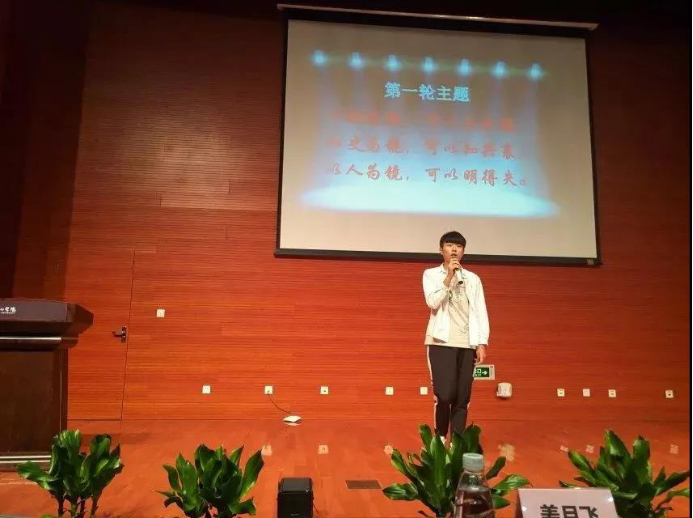 第二轮“即兴演讲”环节,以我校校训“明德至善,博学笃行”为主题。进入的六名选手对此八字详思甚解,各抒己见。让在场的各位观众对校训有了更深刻的认知。