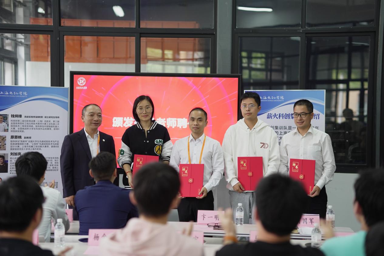 卞一明书记为指导老师代表钱炳锋、严屹宏、马利影、杨金平等颁发聘书。