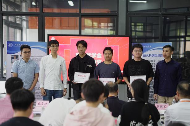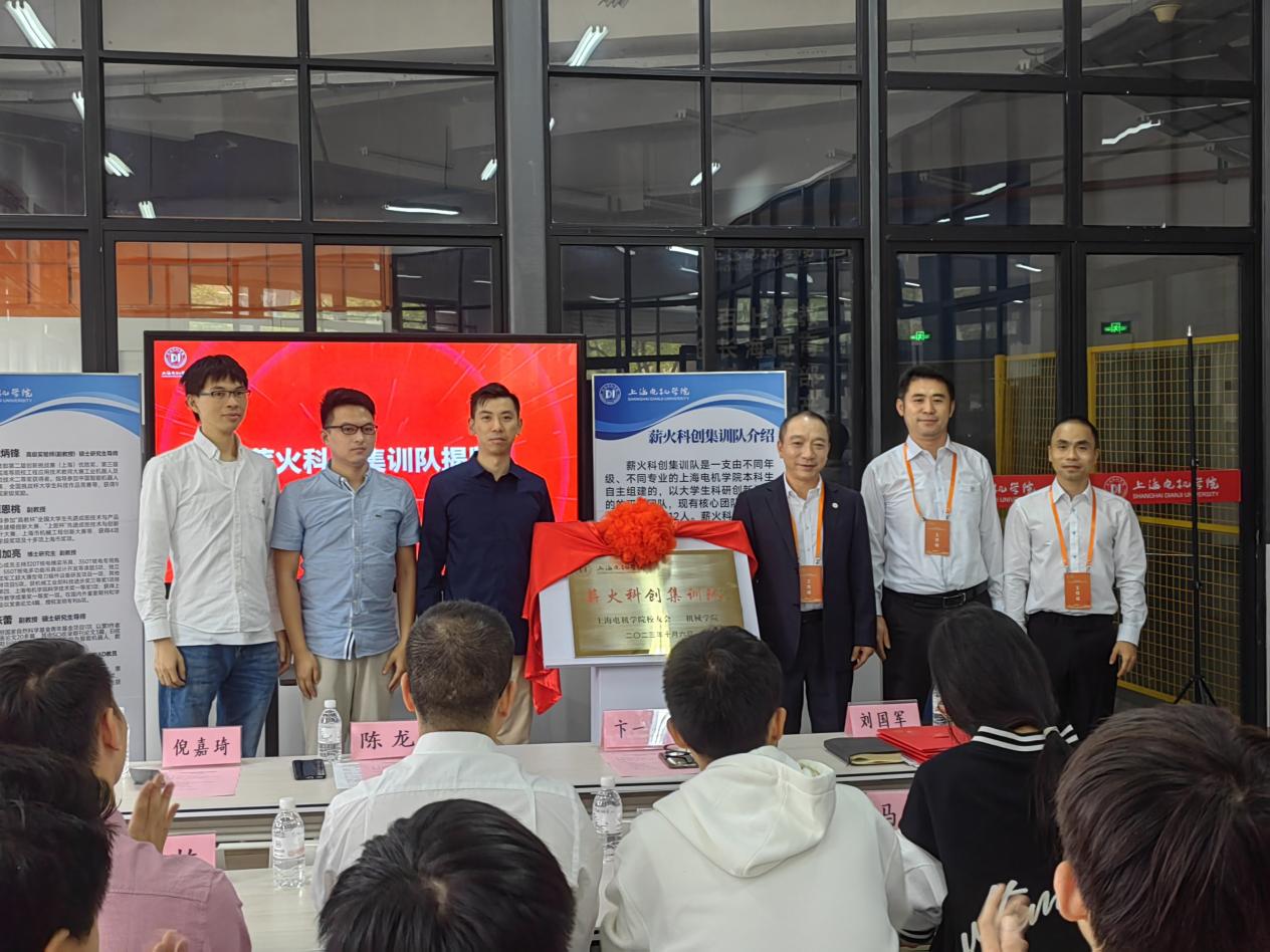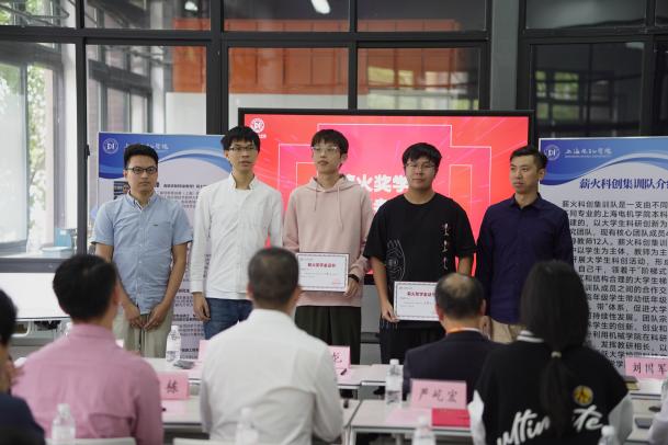 在参会人员的见证下,卞一明书记、刘国军副书记与校友陈龙、倪嘉琦,谢海川等为薪火科创集训队揭牌。