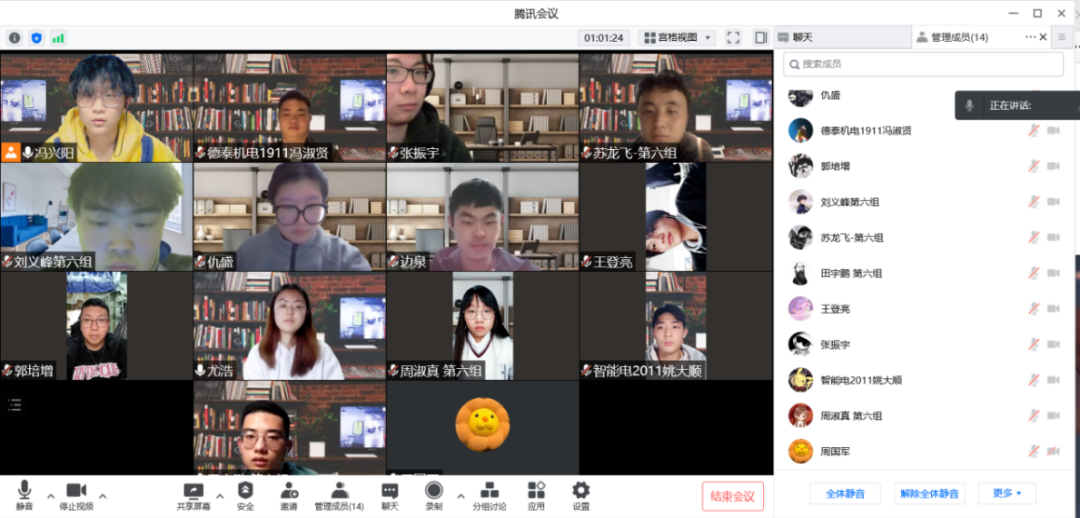 自3月14日转为线上教学至今,许多同学产生了学业上的焦虑,尤其是大四即将毕业的同学,只能线上与导师沟通进展,难免会存在沟通不充分、交流不流畅的情况。对此,机电1812陈文溢同志号召有能力解决学业问题的“能人”成立帮辅小组,通过腾讯会议,利用屏幕共享功能,直观了解同学们的疑惑,为他们一一解答。