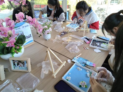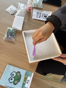同学们依次挑选自己感兴趣的材料后,静静坐下来,开始思考自己独一无二的创意。新手同学借助教程学习奶油胶的使用方法,模仿教程作出漂亮的作品,已经有经验的同学们便是如鱼得水,在现有的材料上发挥奇思妙想,做出了各种有趣的作品,大家都对自己的成品都十分满意。