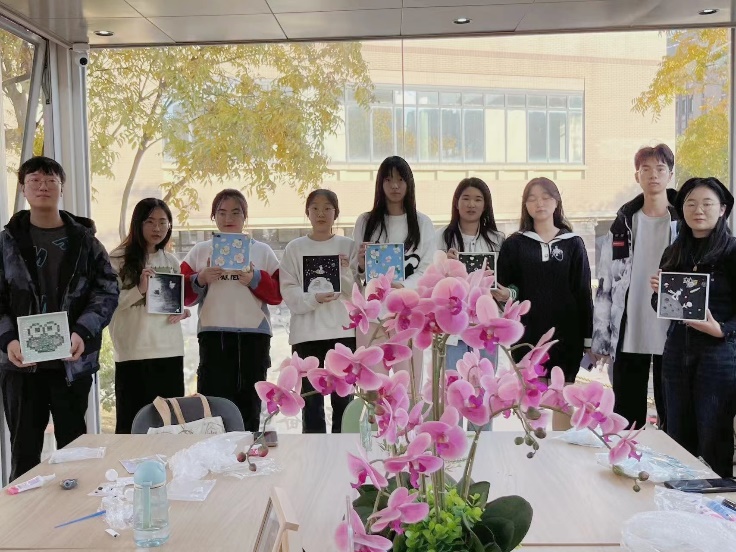 午后暖阳洒在玻璃房里,同学们将色彩一点点融在白色画框中,就如他们的笑声将单调的冬日染上多巴胺的欢乐氛围。大胆的配色,奇妙的构思,精心摆放的饰品,一幅幅“艺术品”即将出炉!